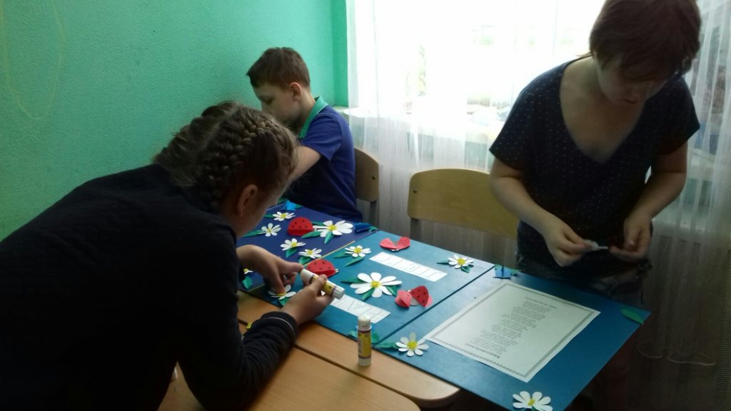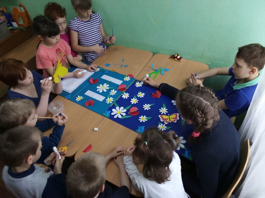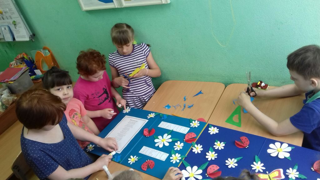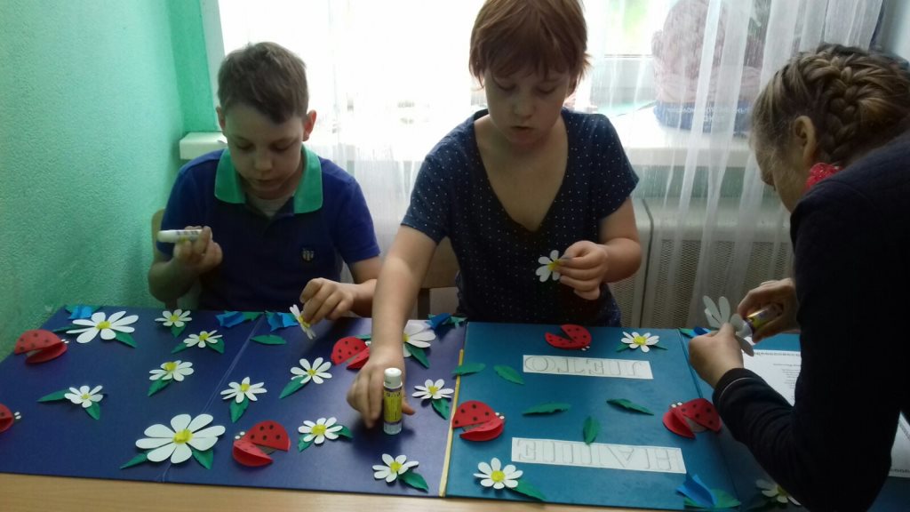 16 июня с воспитанниками нашего центра была организована коллективная работа аппликация ,,Наше лето''. Именно летом у детей появляется вдохновение для создания ярких творений. Очень хочется перенести всю яркую и контрастную красоту на бумагу. Вот и мы с ребятами создали яркую, цветочную поляну из полевых цветов: ромашек и колокольчиков. Дополнили аппликацию насекомыми - божьими коровками и бабочками. Ребята очень старались, каждый выполнял свою работу аккуратно, вырезали и наклеивали цветы и насекомых на основу поляны. При выполнении аппликации были поставлены следующие задачи: воспитывать бережное отношение к растениям и насекомым, прививать любовь к окружающему миру, формировать аккуратность в работе. Все ребята остались довольны от проделанной работы. Картина получилась яркая и веселая.