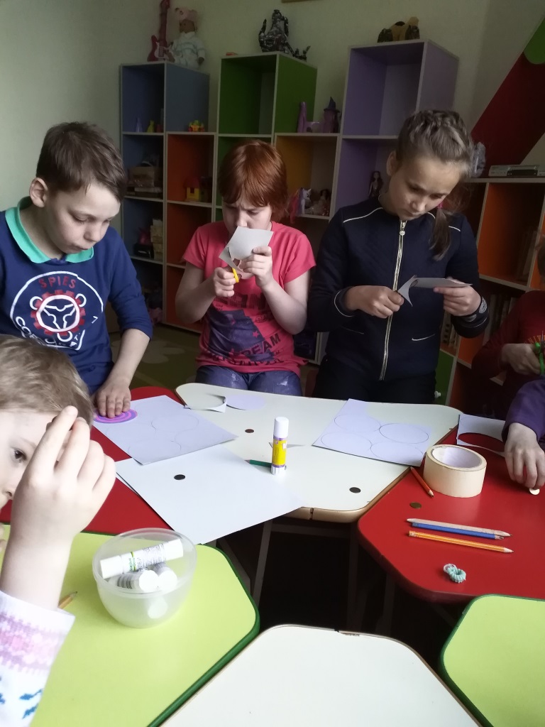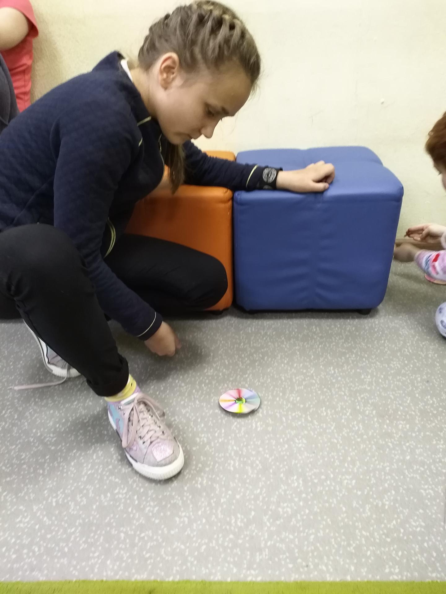 Волчок — игрушка универсальная. Волчки из бумаги простая поделка и очень эффектная игрушка для детей и взрослых. Он состоит из круга, вырезанного из картона, и основания – маленькой монетки. При движении волчок располагается вертикально, но как только он перестает крутиться, он тут же падает. С помощью волчка можно получить различные оптические эффекты. Играть в волчки могут дети с 3-5 лет. Это не только интересно, но и полезно для развития пальчиков и речевых центров ребенка. Ребята очень быстро изготовили игрушку и приступили к игре.