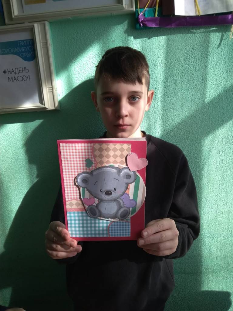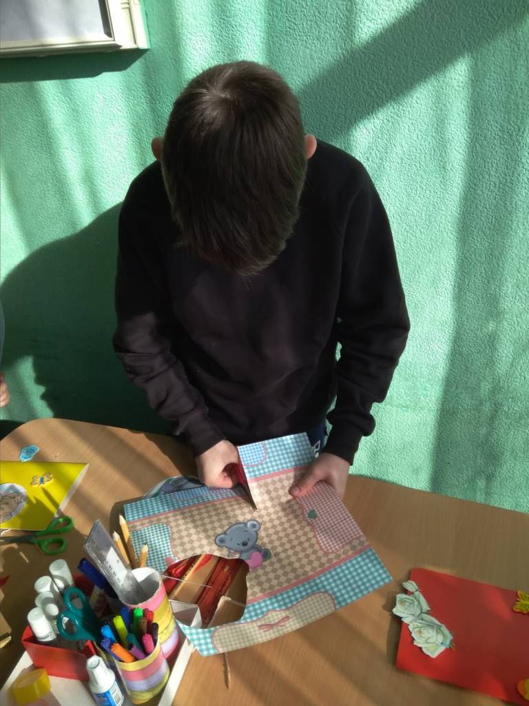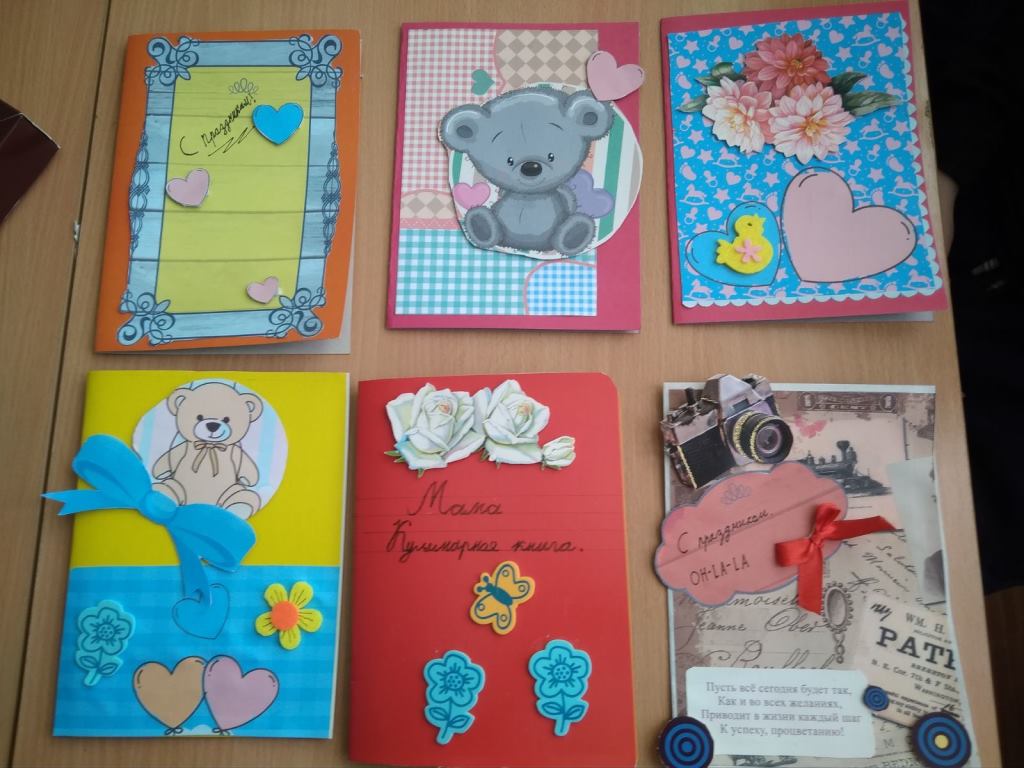 Решили начать с простейшего: сделать открытку. Обдумав тематику и стиль, выбрав материал, приступили к работе. Было нелегко. Желание охватить всё и сразу боролось с эстетическим вкусом. Ребята справились. В результате кропотливого труда получились милые открытки для мамы, сестрёнки, друга.