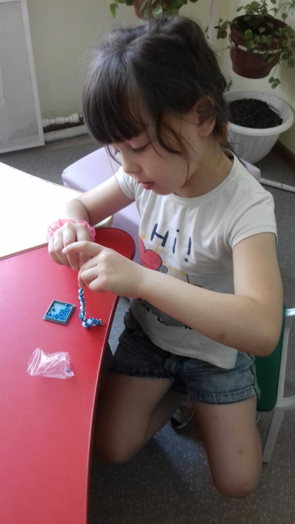 Плетение различных украшений - увлекательное, забавное и полезное занятие. Любое украшение, созданное своими руками- это настоящая эксклюзивность и положительная энергетика .Наши воспитанники с большим удовольствием и желанием плетут изделия из бисера. Цель занятия - учить изготавливать несложные украшения из бисера, пользуясь схемой, формировать умения плести с опорой на образец. 18 июня ребята изготовили каждый сам для себя интересный браслет. Во время процесса воспитанники были усидчивы, терпеливы, внимательны, все очень старались, проявляли свои творческие способности. По окончании работы, замерили браслеты по руке и закрепили замочки. Вот и готовы наши модные, красивые украшения.