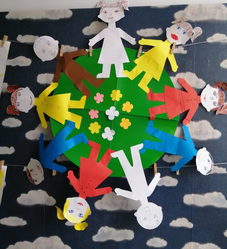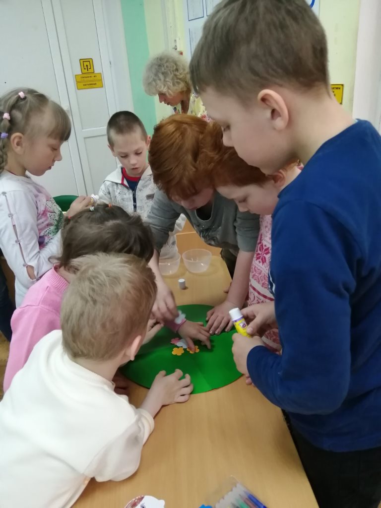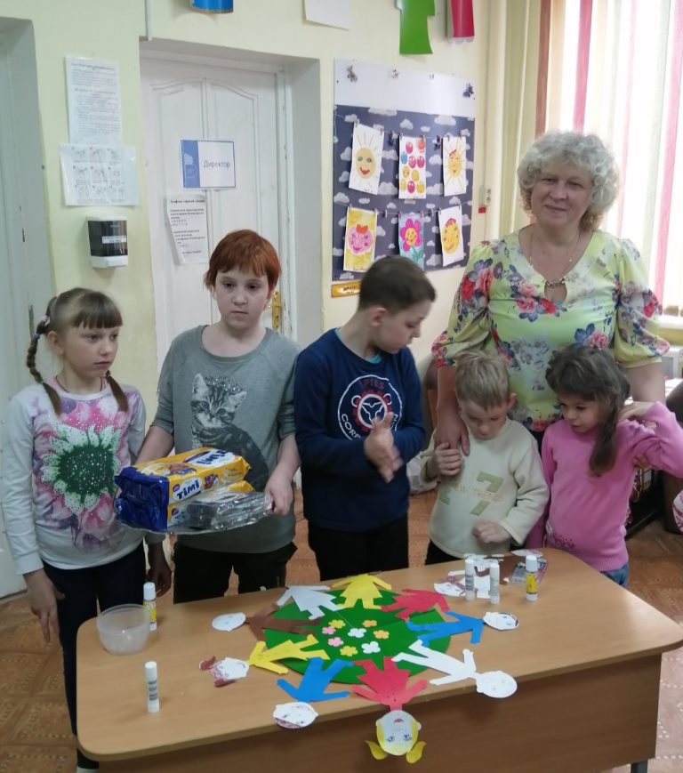 Совместно с ребятами сделали поделку - символ праздника, это – зелёный флаг с изображением Земли и разноцветных детей (что символизирует разные национальности). Изображенные на флаге фигурки тянутся друг к другу руками, что должно символизировать единство всего мира в решении проблем, связанных с неблагополучным детством. В завершении праздника ребята потанцевали и получили сладкие подарки от "Молодая Гвардия".